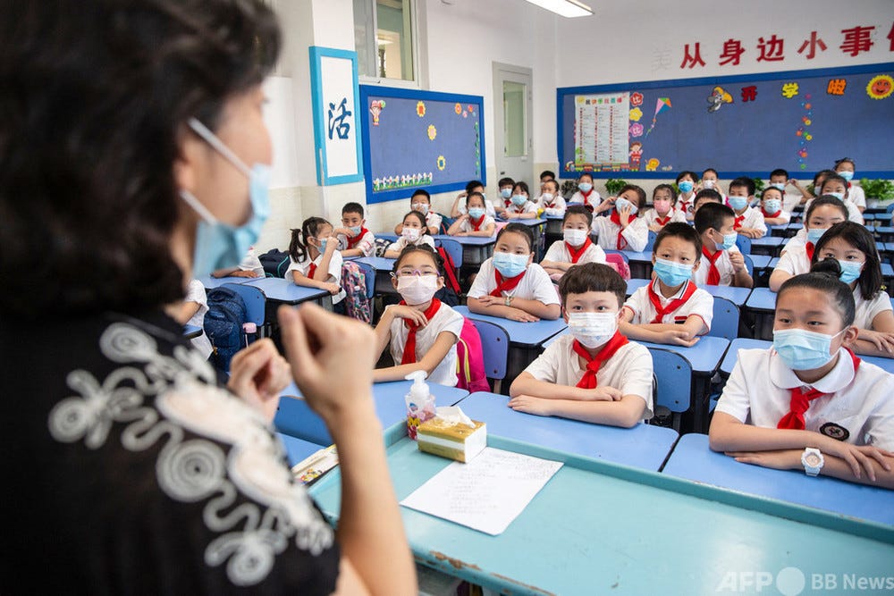 Le 1er septembre 2021, la Chine a commencé à utiliser de nouveaux manuels scolaires intégrant les « pensées du président Xi Jinping », applicables aux enfants à partir de 7 ans [AFP].