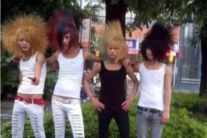 Le terme Shamate 杀马特 a été créé en 2006 par Luo Fuxing 罗福兴 : alors âgé de 11 ans, il découvre Internet et notamment des images de la jeunesse chinoise underground de l’époque dont le style, bien que très en vogue, lui paraît assez ringard. Quitte à ne pas être dans le moule, autant affirmer sa différence : le look des Visual kei japonais (日本视觉系), rockeurs aux cheveux hirsutes aux yeux maquillés et aux vêtements dénotant un certain raffinement, lui parle plus. Après s’être teint les cheveux en rouge et les avoir coiffés en pétard, il enfile une veste à clous et un sarouel. Il cherche la traduction anglaise du terme « 时尚 » (« à la mode, fashion ») et trouve le mot « smart », qu’il transcrit phonétiquement 杀马特 (shāmǎtè en pinyin). Après s’être pris en photo et y avoir associé ces trois caractères, il poste le tout sur le net… qui s’enflamme. Les Shamate sont nés. Il est intéressant d’examiner de plus près les caractères choisis par Luo Fuxing pour transcrire le mot « smart » : 杀 shā= tuer / 马 mǎ = cheval / 特 tè = spécial. La combinaison de ces trois caractères n’a pas de sens particulier (à moins de l’interpréter de manière trop littérale au sens de « Tuer Matt », l’association « 马特 » mǎtè étant couramment utilisée pour transcrire le prénom Matt). En revanche, pris séparément, ils donnent une tonalité guerrière (« tuer »), animale (« cheval ») et avantageuse (« spécial ») au néologisme 杀马特, qui s’avère au final tout à fait polysémique et dépasse la signification d’ordre purement esthétique recherchée à l’origine par la traduction du mot « smart » (par ailleurs lui-même polysémique). Les Shamate ? Tout à la fois des sapeurs et de jeunes migrants jouant aux mauvais garçons, mi-punks mi-dandys 2.0. |