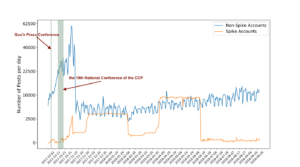 Je ne vais pas rentrer dans le détail de notre propre méthode de collecte de données mais pour résumer, nous nous sommes basés sur les mots clés et l’échantillonnage par réseau (ou échantillonnage boule de neige). Je vous invite à consulter l’article complet pour plus de détails sur la méthodologie. La seconde étape de notre étude a été d’identifier les comptes fantômes, un travail qui s’est révélé fastidieux. (…). Au final, nous avons identifié environ 18 000 comptes de propagande de l’Internet Water Army.